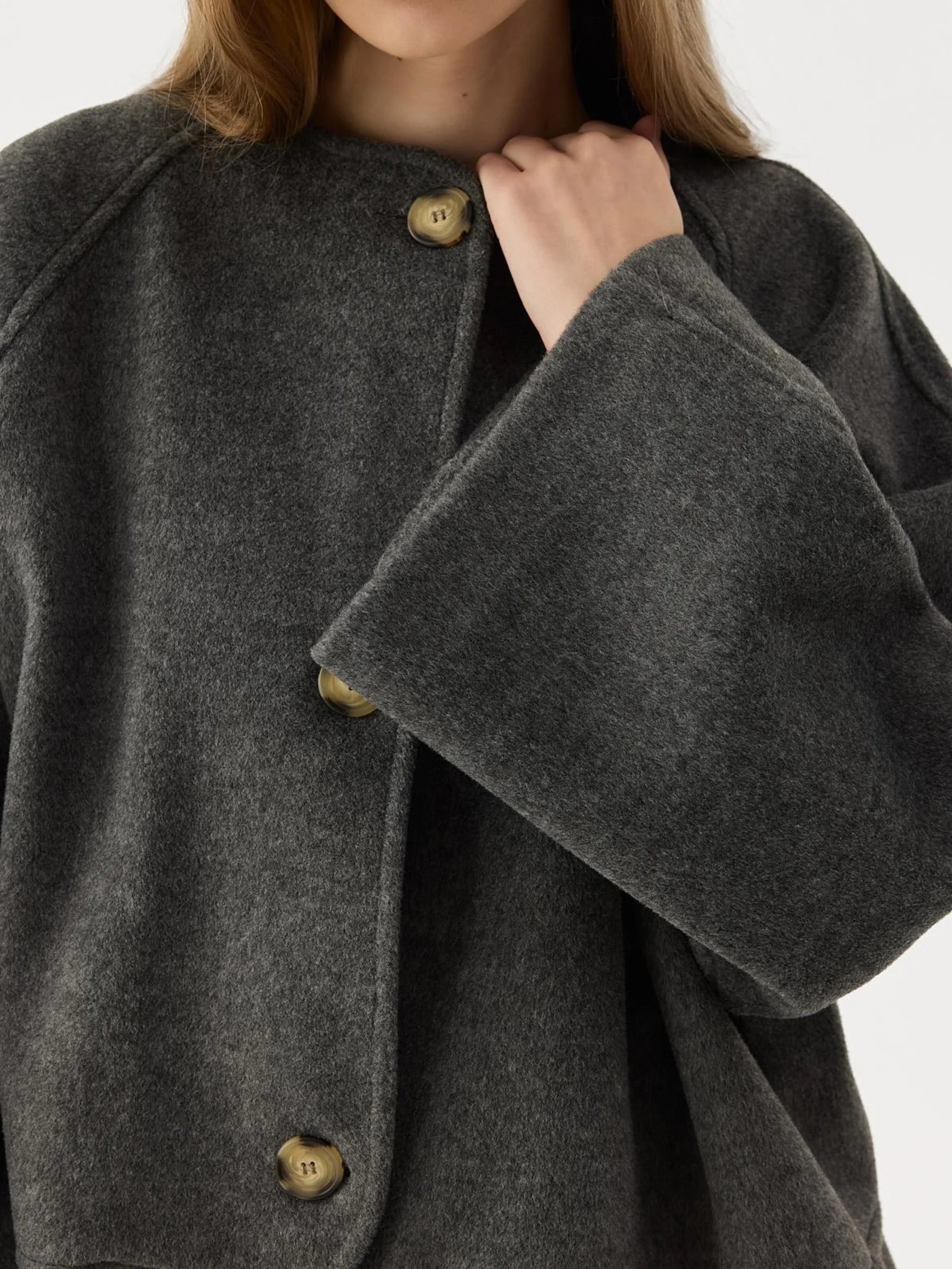 - Rundhalsjacke mit weiten Ärmeln