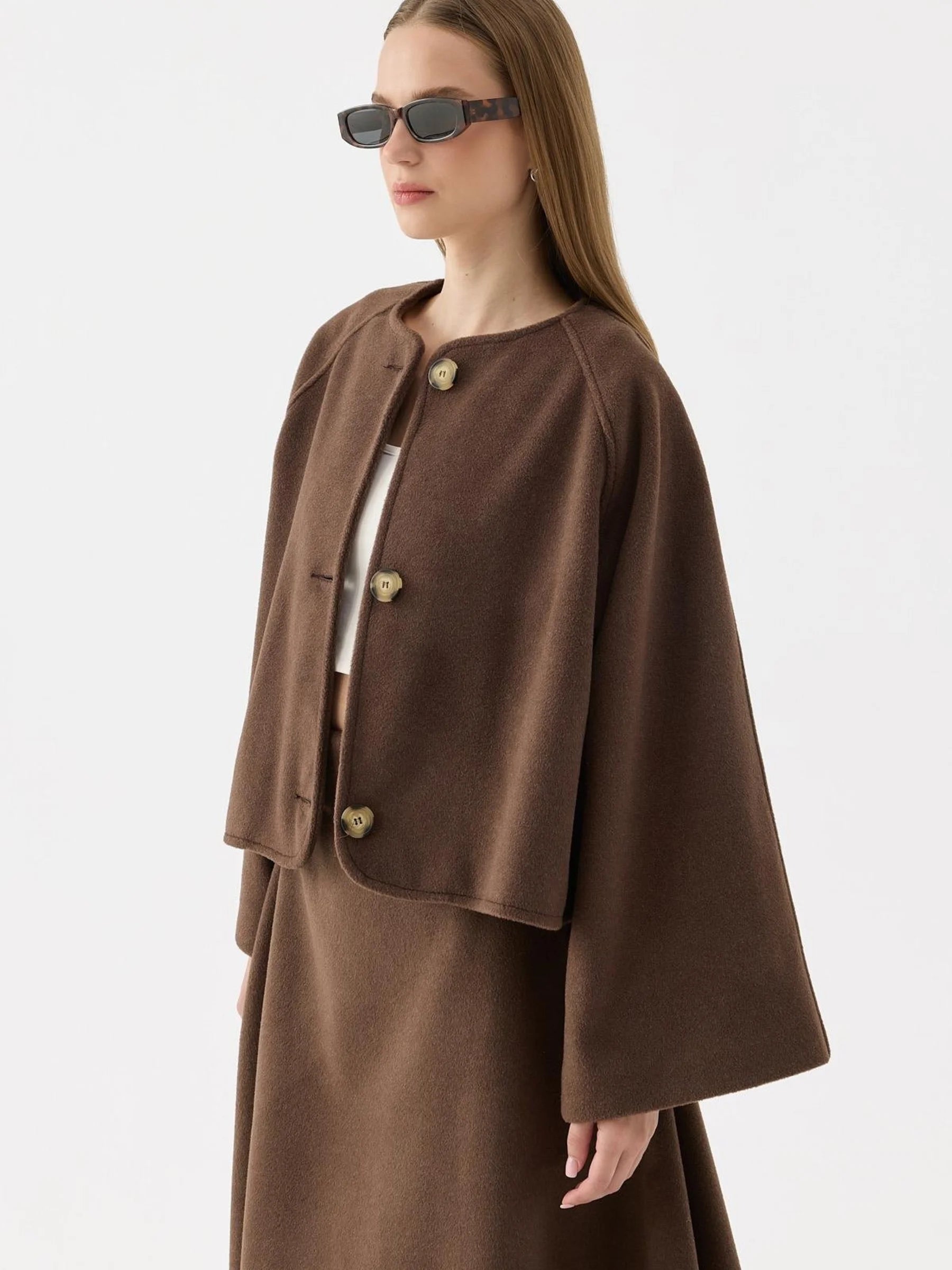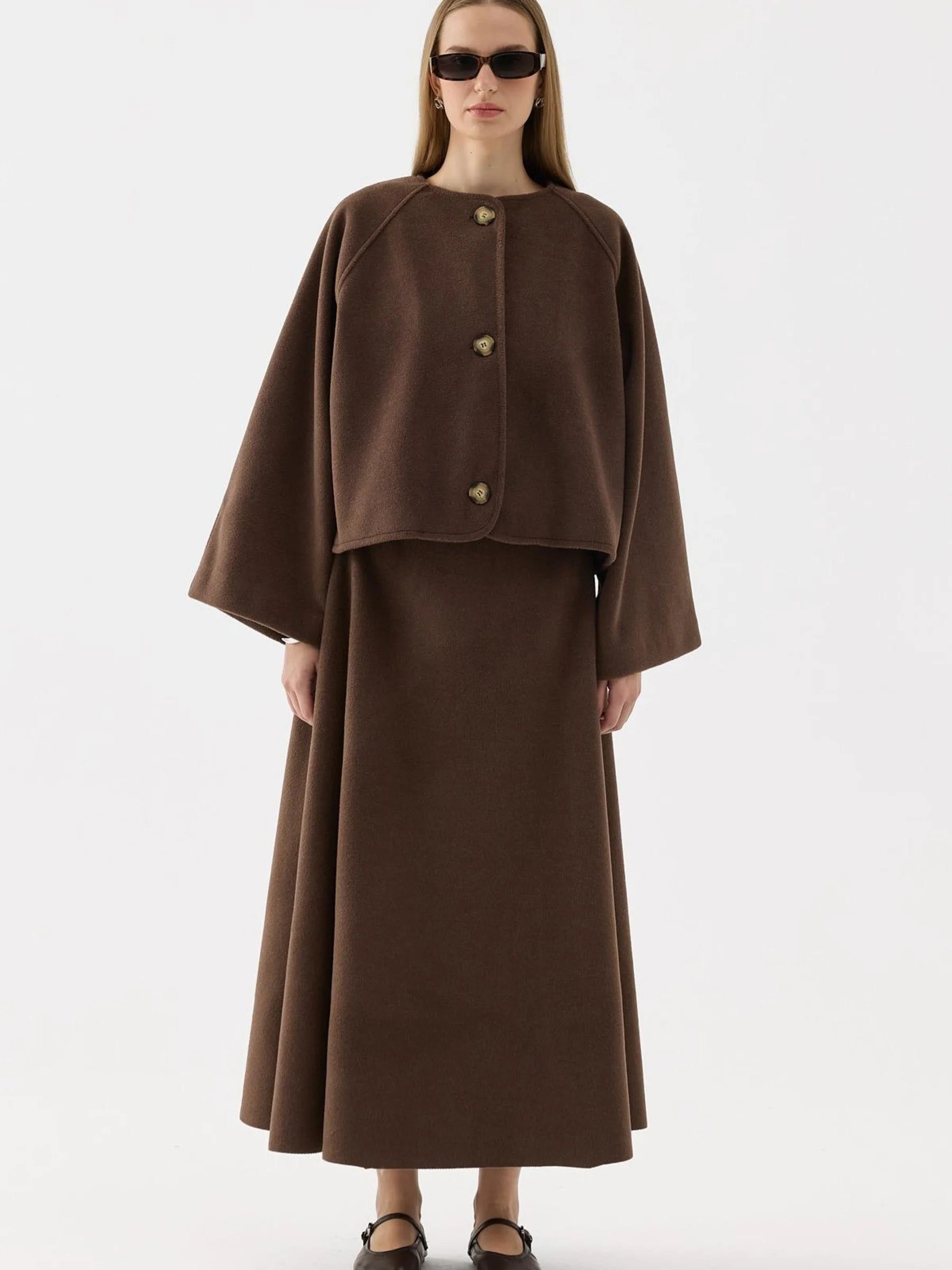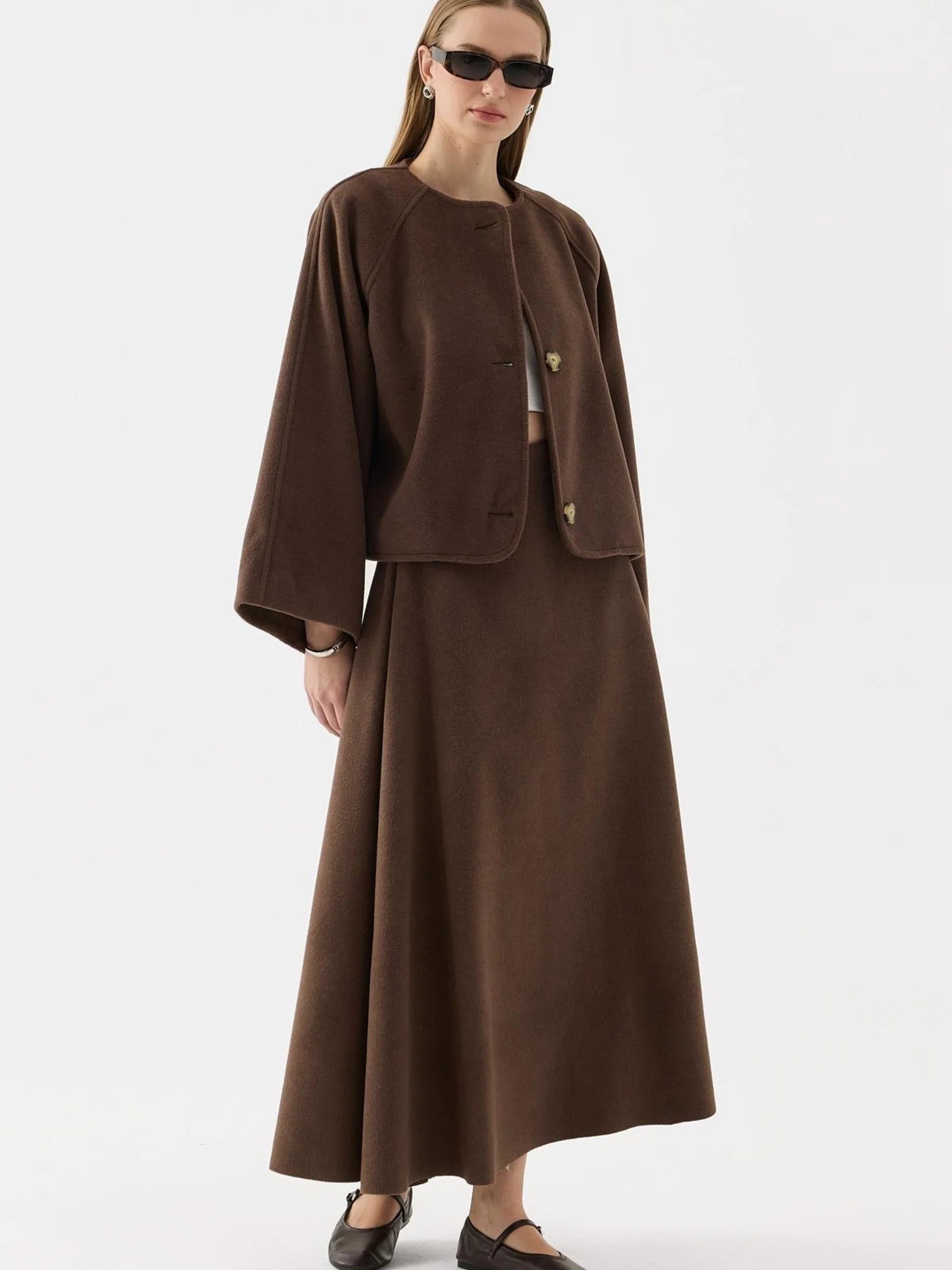 - Zweiteiliges Set mit geknöpfter, offener Jacke und passendem Rock